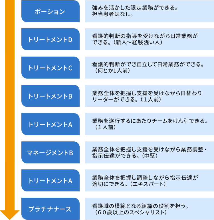 京都回生病院看護部では、2025年より職員の職場への貢献度をできる限り高く評価したいと考え、人材育成を目的とした能力評価に給与を連動するという取り組みを開始しました。 この取り組みは、以前から存在した「同一賃金が平等なのか」という疑問や、能力の差が賃金に反映されていないことが不平不満につながる可能性から生まれたものです。 委員会活動、実習指導、新人教育など、通常の業務以外で力を発揮している職員を継続的に評価する方法です。 ※「ワークスタイルアビリティ」とは、ここのスキルや経験を給与に反映させるため、京都回生病院の看護部が独自に考案した評価手法のことです。